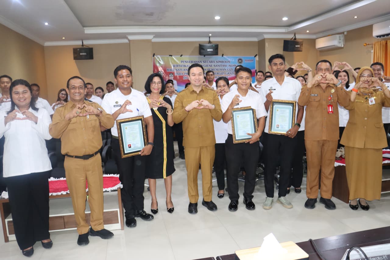 Sementara itu, dalam laporannya, Kepala Dinas Kesehatan Kota Kupang, drg. Retnowati, menjelaskan bahwa penyerahan sertifikat ini bertujuan untuk meningkatkan status gizi dan kualitas kesehatan anak sekolah, ibu hamil, ibu menyusui, dan balita, sekaligus menjamin keamanan pangan yang disajikan melalui penerapan standar hygiene sanitasi pangan di setiap satuan layanan.