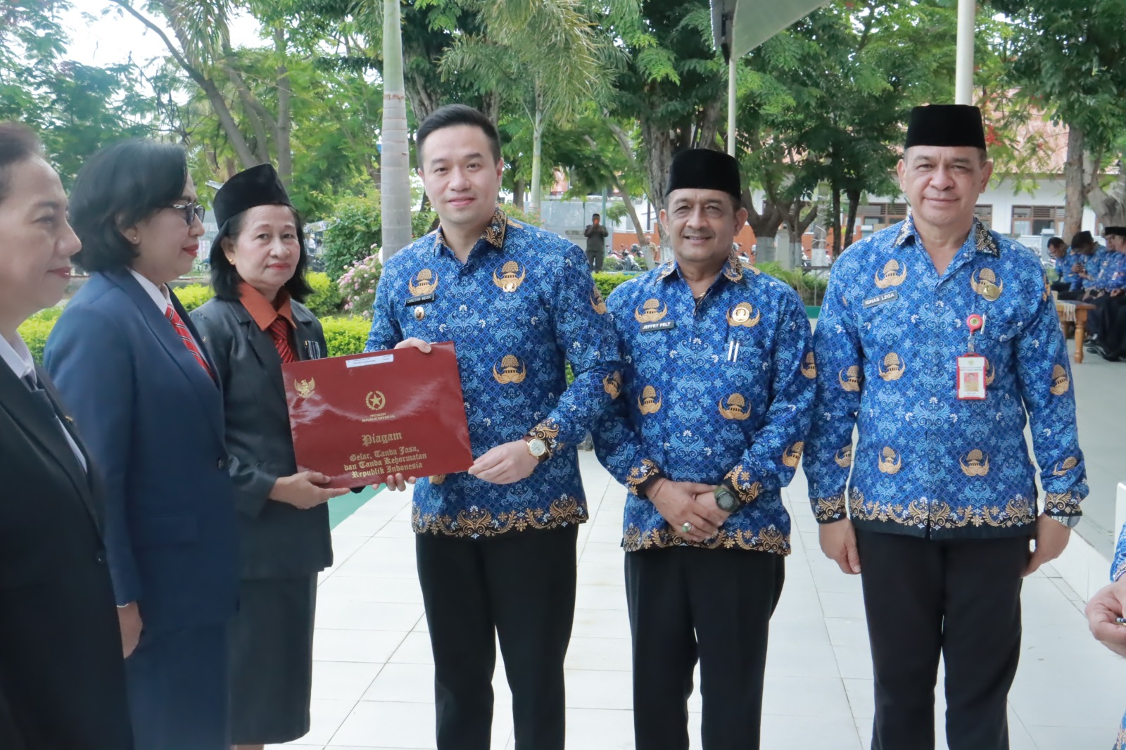 Pada kesempatan tersebut, juga dilakukan penyerahan penghargaan Satya Lencana Karya Satya kepada 261 ASN Kota Kupang, penyerahan santunan duka bagi ahli waris dari 16 ASN lingkup Pemerintah Kota Kupang, serta penyerahan penghargaan Anubhawa Sasana Jagaddita dari Kementerian Hukum dan HAM RI serta Mahkamah Agung kepada Kelurahan Fatufeto atas kontribusinya dalam mendukung layanan publik berbasis kesadaran hukum dan kerukunan sosial. *PKP_chris dethan/nina tiara*