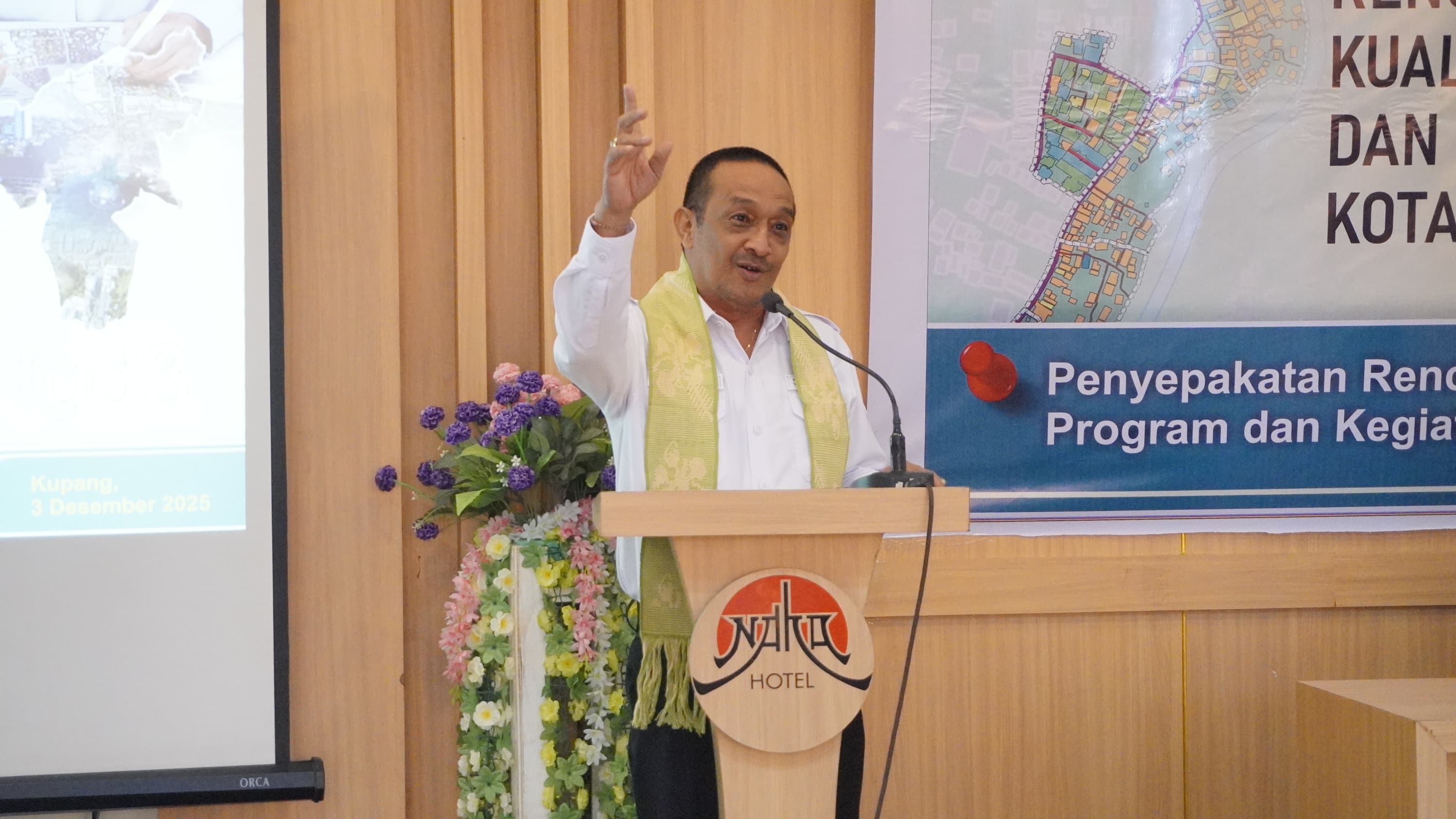Sekretaris Daerah Kota Kupang, Jeffry Edward Pelt, S.H., membuka secara resmi kegiatan FGD III bagi masyarakat pada kawasan perumahan dan permukiman kumuh yang berlangsung di Hotel Naka, Rabu (3/12). Kegiatan ini merupakan bagian dari tahapan akhir penyusunan Dokumen Rencana Pencegahan dan Peningkatan Kualitas Perumahan Kumuh dan Permukiman Kumuh (RP2KPKPK) Tahun 2025.