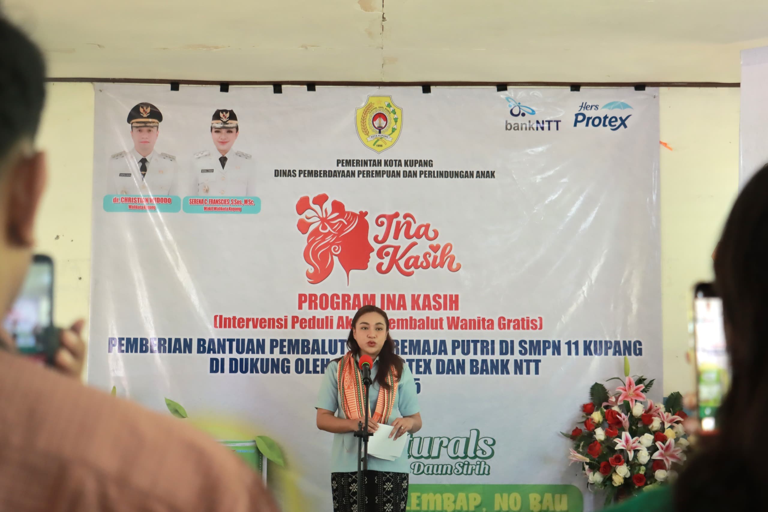 Wakil Wali Kota Kupang, Serena C. Francis, S.Sos., M.Sc., menyerahkan bantuan pembalut gratis melalui Program Ina Kasih kepada siswi SMPN 11 Kupang serta masyarakat Kelurahan Fatukoa dan Naioni. Penyerahan berlangsung dalam dua titik: pertama di Aula SMPN 11 Kupang, Jalan Taebenu, Kelurahan Naimata, kemudian dilanjutkan di Kantor Lurah Fatukoa, Kamis (11/12).