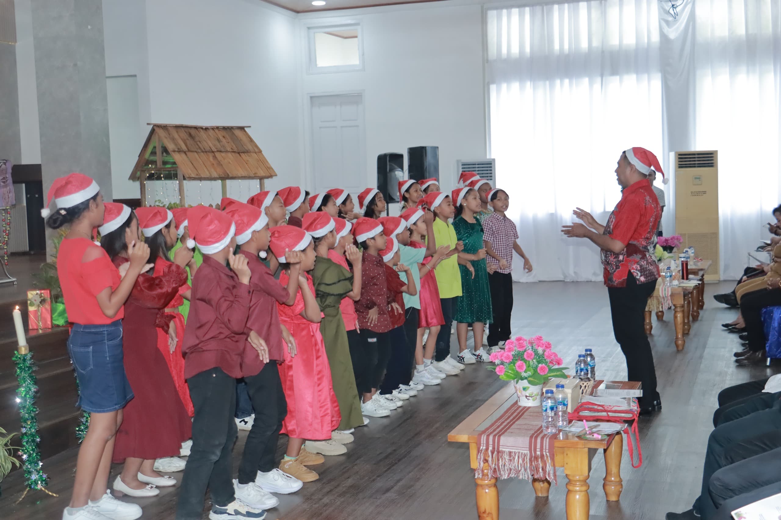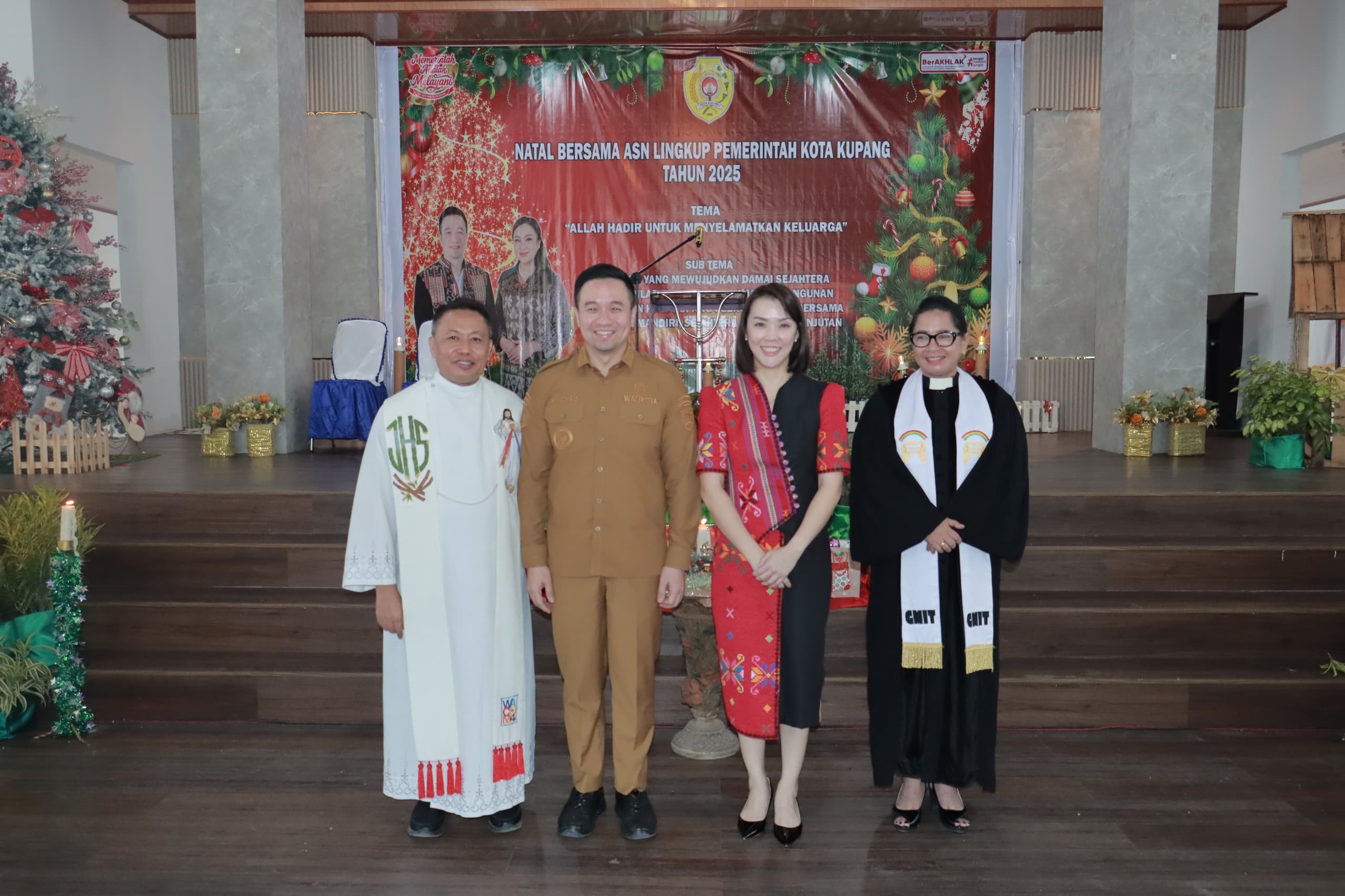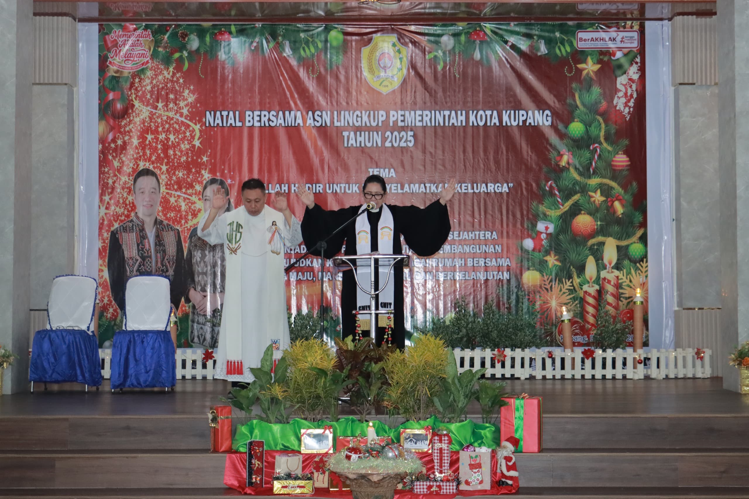 Perayaan Natal yang mengangkat tema “Allah Hadir untuk Menyelamatkan Keluarga” dengan subtema “Keluarga yang Mewujudkan Damai Sejahtera sebagai Pilar Pendukung Pembangunan Menuju Kota Kupang yang Maju, Mandiri, Sejahtera, dan Berkelanjutan” ini diawali dengan ibadah Natal yang dipimpin oleh Ketua Majelis Klasis Kota Kupang Timur, Pdt. Mercy Paula Kapioru-Pattikawa, S.Th., bersama Pastor Paroki St. Maria Assumpta Kupang, RD. Rudolf Tjung Lake.
