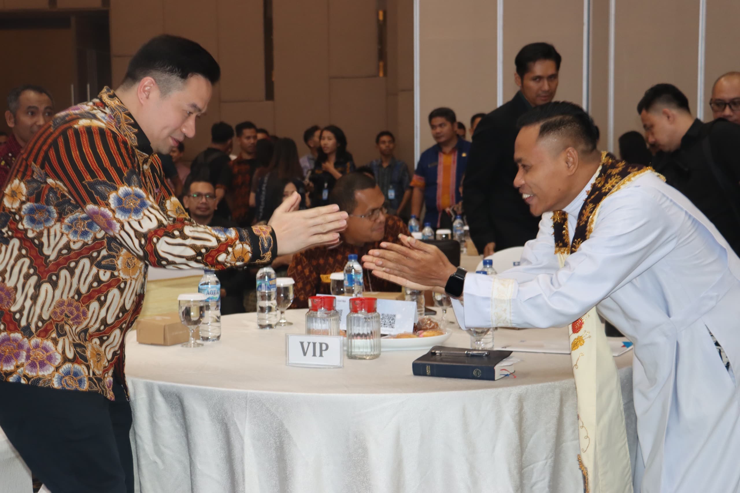 Wali Kota Kupang, dr. Christian Widodo, menghadiri Perayaan Natal Bersama Badan Musyawarah Perbankan Daerah (BMPD) dan Forum Komunikasi Lembaga Jasa Keuangan (FKLJK) Tahun 2025 yang berlangsung di Palacio Ballroom, Hotel Aston Kupang, Kamis (15/1).