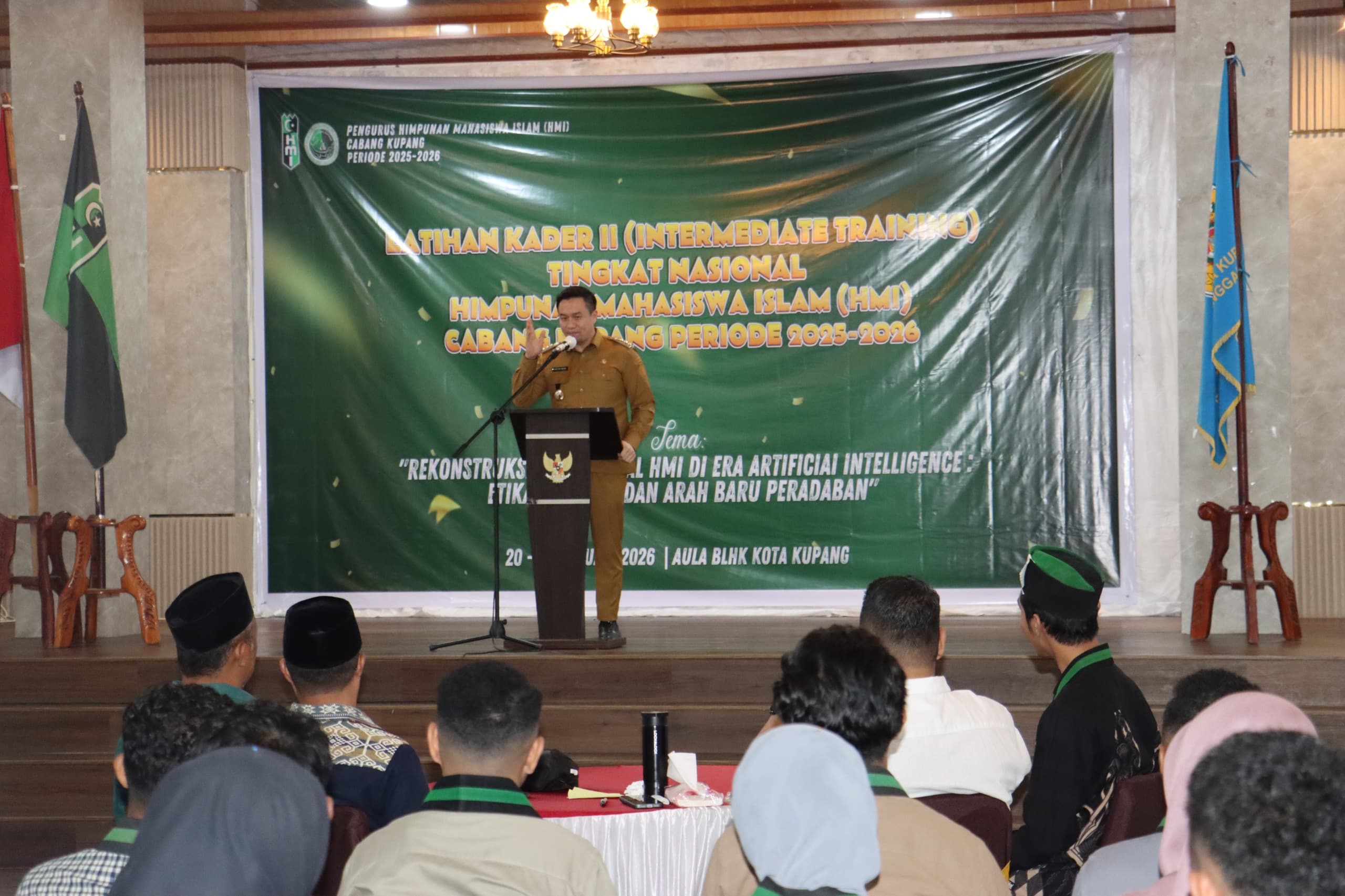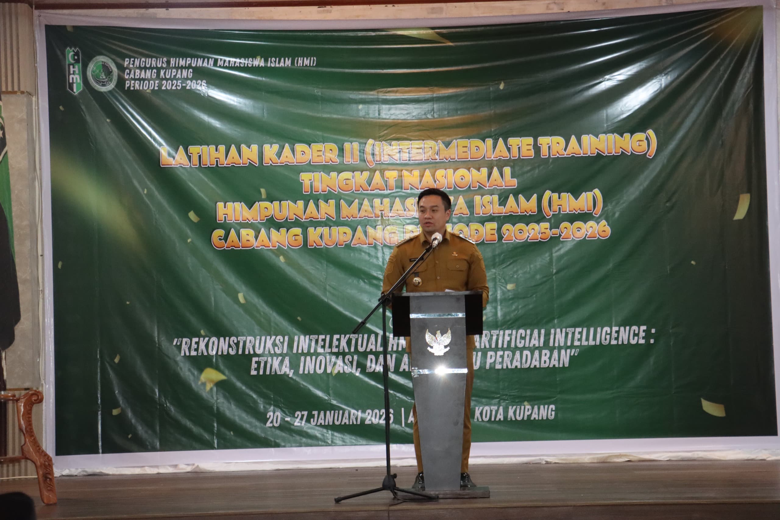 Wali Kota Kupang, dr. Christian Widodo, menghadiri sekaligus membuka kegiatan Latihan Kader II (Intermediate Training) Tingkat Nasional Himpunan Mahasiswa Islam (HMI) Cabang Kupang Periode 2025–2026, Senin (19/1), di Aula Rumah Jabatan Wali Kota Kupang.