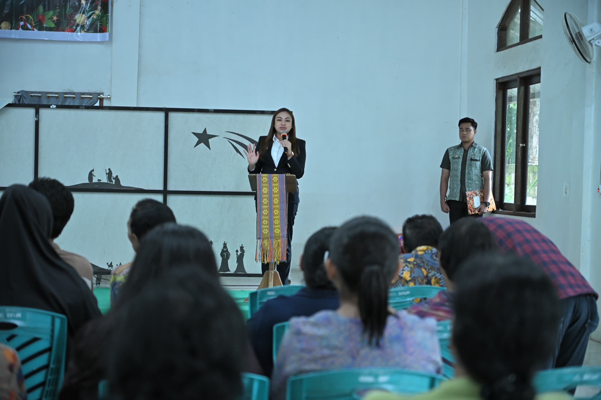 Wakil Wali Kota Kupang, Serena C. Francis, S.Sos., M.Sc., menghadiri sekaligus menyerahkan bingkisan Natal kepada Jemaat GMIT Syalom, khususnya Jemaat Syalom Lingkungan Oetona, yang berlangsung di Gedung PAR Syalom Kupang, Kamis (22/01).
