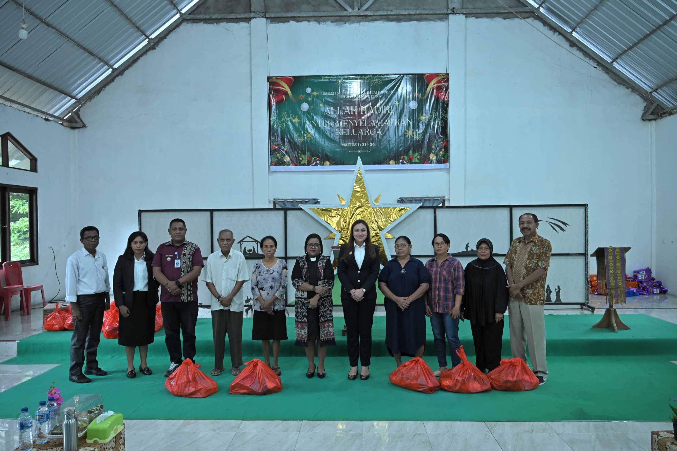 Pada kesempatan tersebut, Wakil Wali Kota Kupang menyerahkan bingkisan Natal kepada 20 orang penerima sebagai wujud kepedulian dan perhatian kepada jemaat yang membutuhkan. Ia berharap bingkisan tersebut dapat menjadi tanda kasih, mempererat rasa persaudaraan, serta menumbuhkan semangat saling menopang dalam kehidupan bermasyarakat.