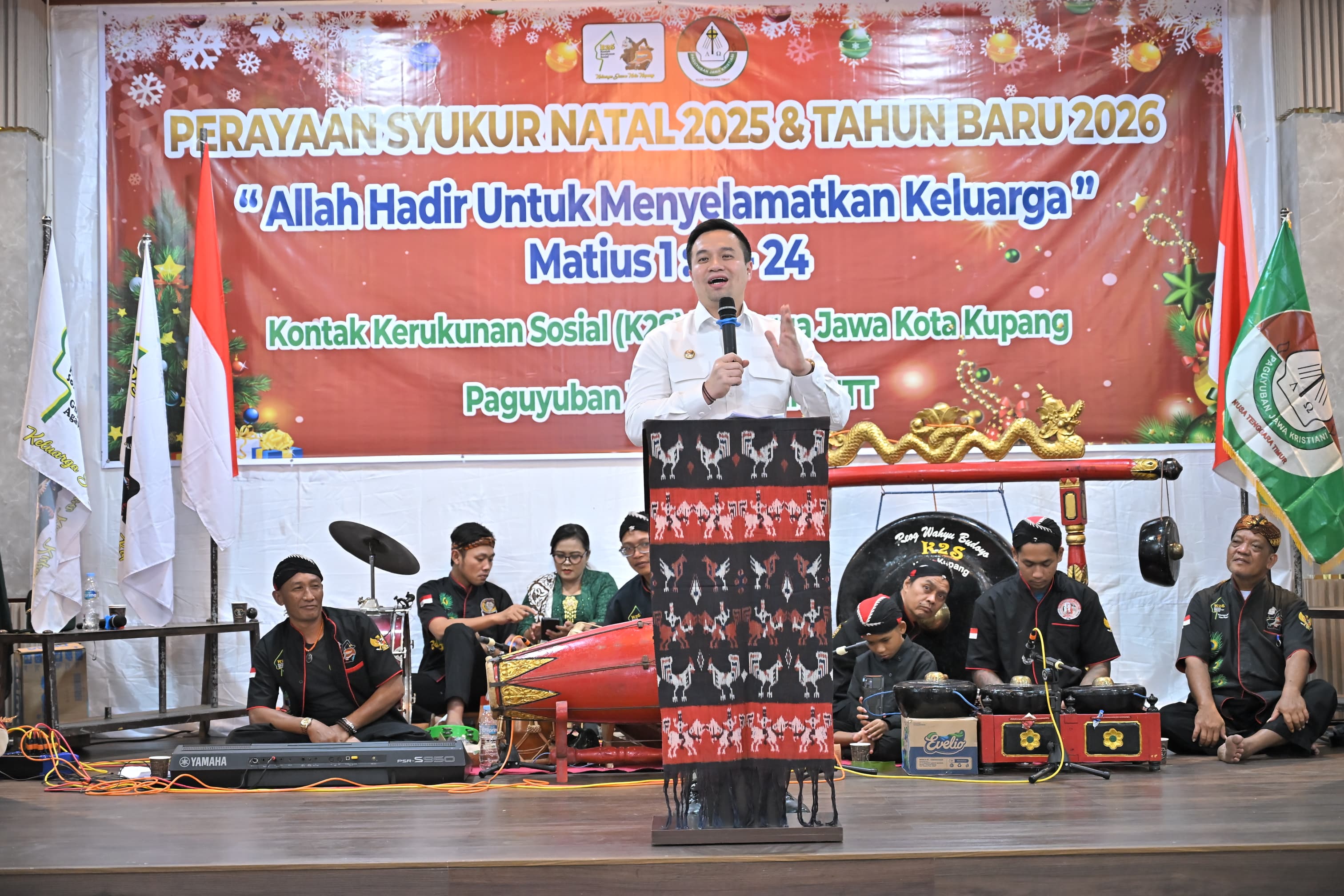 Wali Kota Kupang, dr. Christian Widodo, menghadiri Perayaan Natal dan Tahun Baru Bersama Kontak Kerukunan Sosial (K2S), Keluarga Jawa Kota Kupang, dan Paguyuban Jawa Kristiani (PJK) Nusa Tenggara Timur yang berlangsung di Aula Rumah Jabatan Wali Kota Kupang, Jumat (23/01).