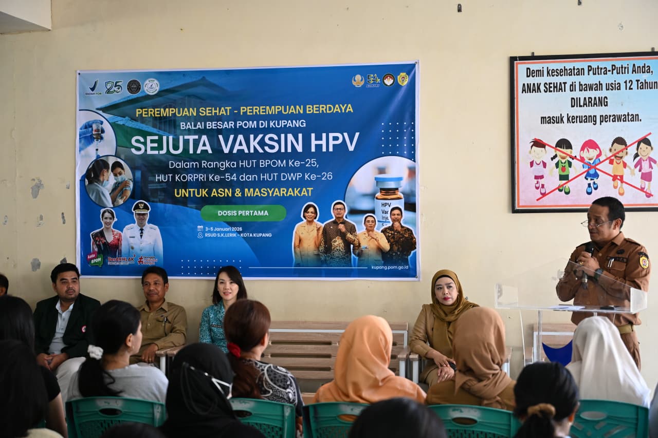 Sementara itu, Kepala Balai Besar Pengawas Obat dan Makanan (BBPOM) di Kupang, Drs. Sem Lapik, Apt., M.Sc., menyampaikan bahwa kegiatan vaksinasi HPV di Kota Kupang merupakan bagian dari Gerakan Sejuta Vaksin HPV yang diluncurkan secara nasional oleh Badan POM bekerja sama dengan Korpri Nasional dan Dharma Wanita Persatuan (DWP) Badan POM. Gerakan ini menjadi salah satu agenda utama dalam rangkaian peringatan HUT ke-25 Badan POM, HUT ke-54 Korpri Nasional, dan HUT ke-26 DWP Badan POM, sekaligus bentuk dukungan terhadap Asta Cita Presiden RI di bidang kesehatan serta target Kementerian Kesehatan untuk eliminasi kanker serviks pada tahun 2030.