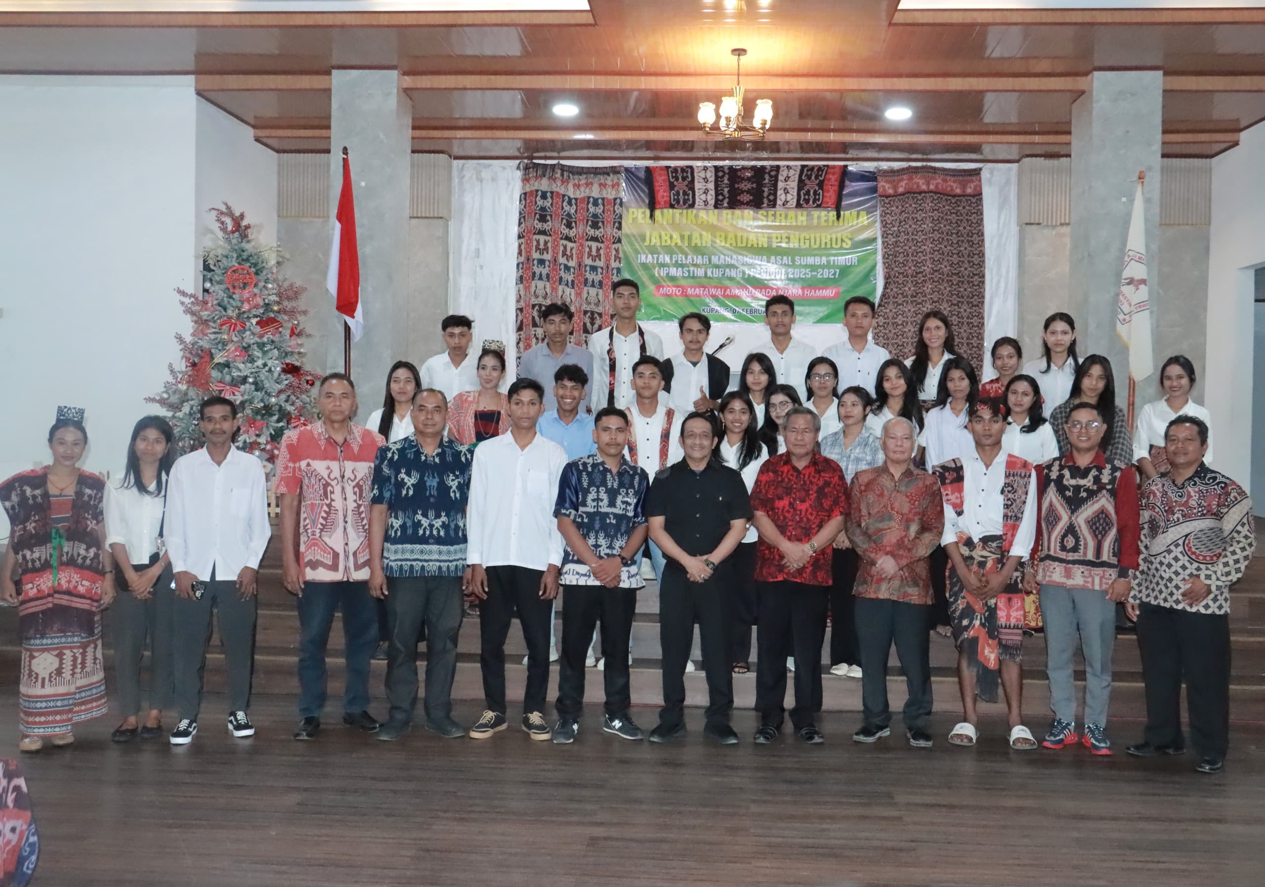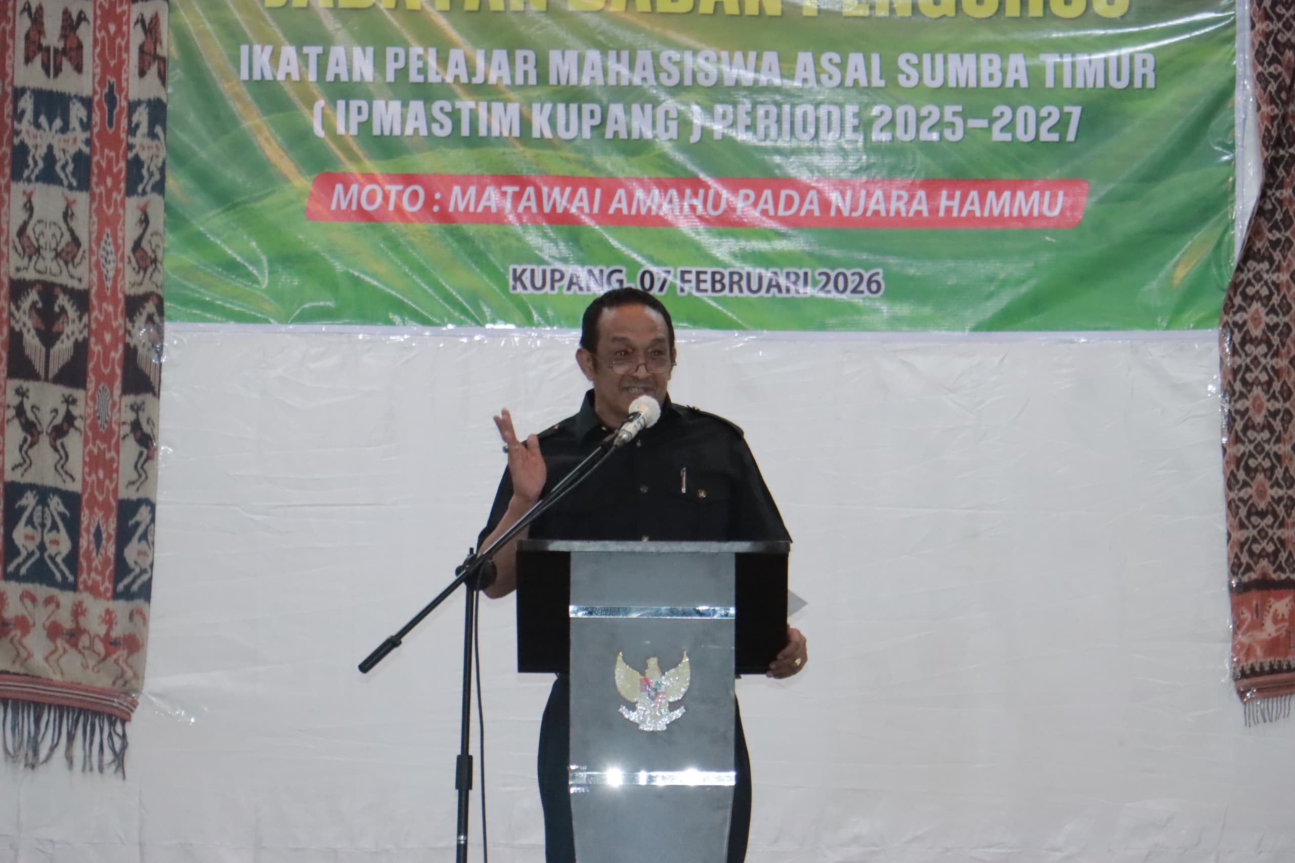 Sekretaris Daerah Kota Kupang, Jeffry Edward Pelt, S.H., menghadiri pelantikan pengurus baru Ikatan Pemuda Mahasiswa Asal Sumba Timur (IPMASTIM) Kupang periode 2025–2027, Sabtu (7/2), di Aula Rumah Jabatan Wali Kota Kupang.