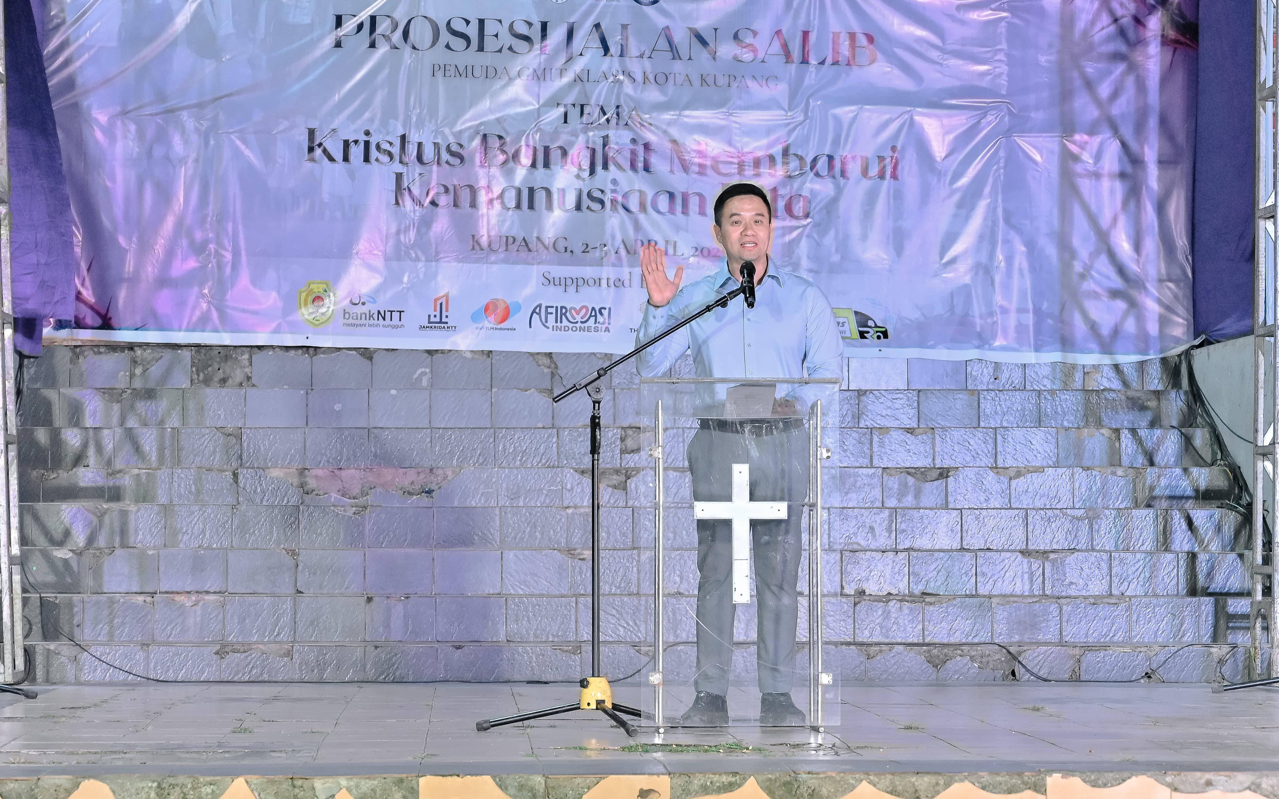 Wali Kota Kupang, dr. Christian Widodo, secara resmi melepas Prosesi Jalan Salib Ke-X Tahun 2026 Pemuda GMIT Klasis Kota Kupang yang berlangsung di Taman Nostalgia Kupang, Kamis (2/4).