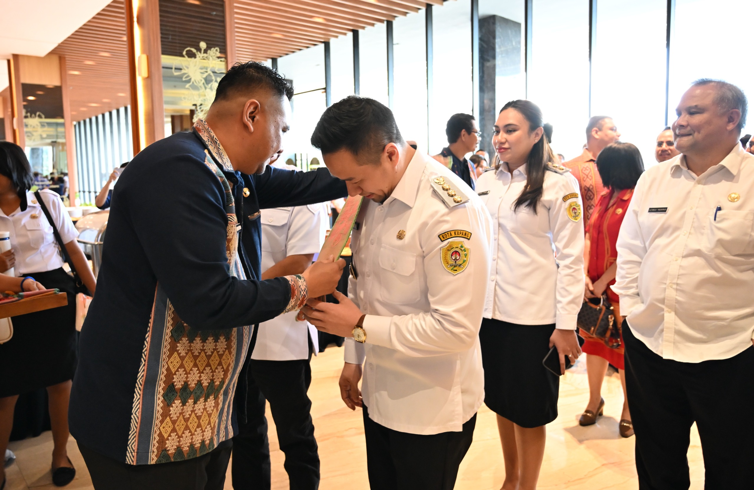 Wali Kota Kupang, dr. Christian Widodo, menyerahkan cinderamata kepada...