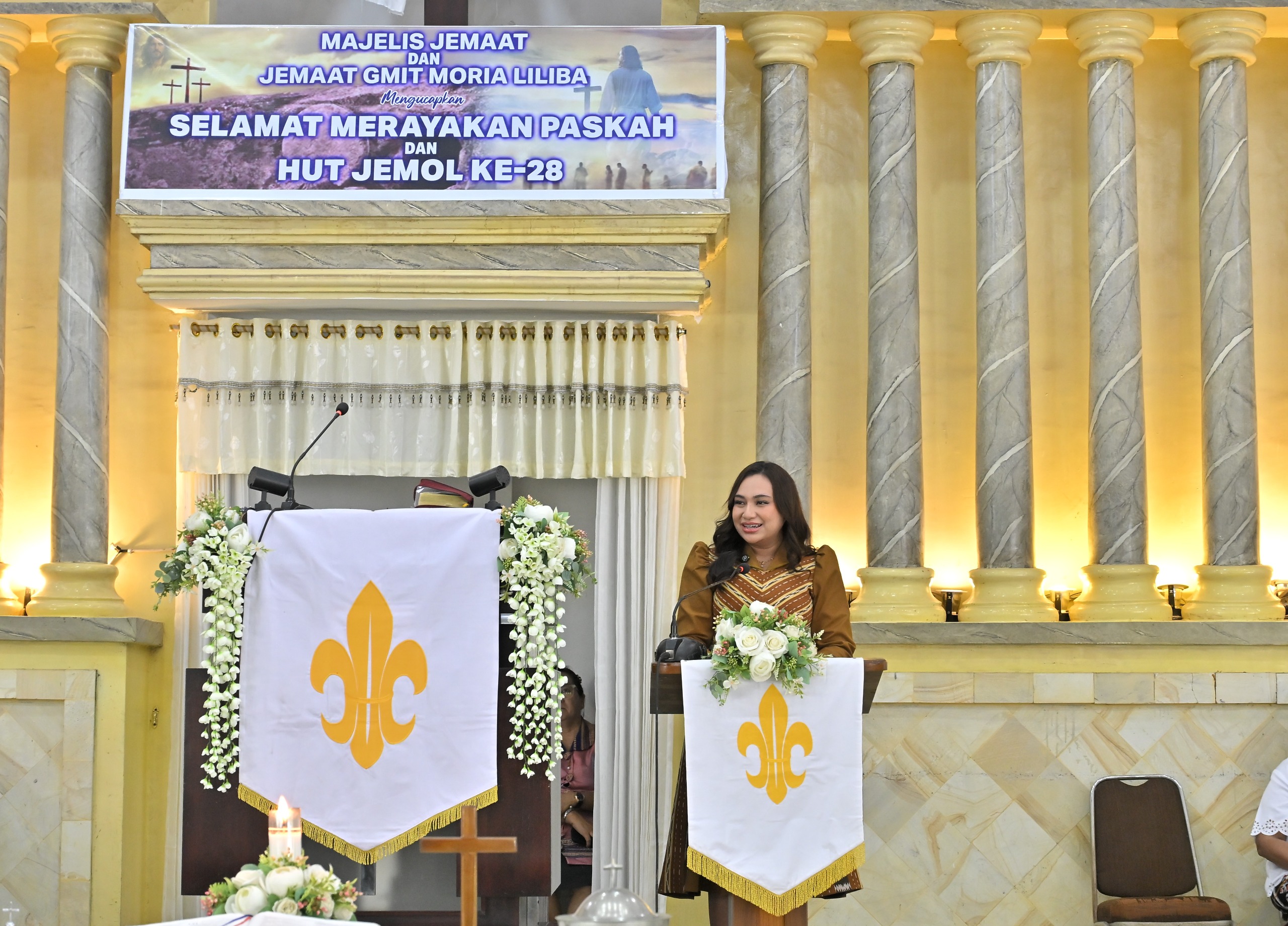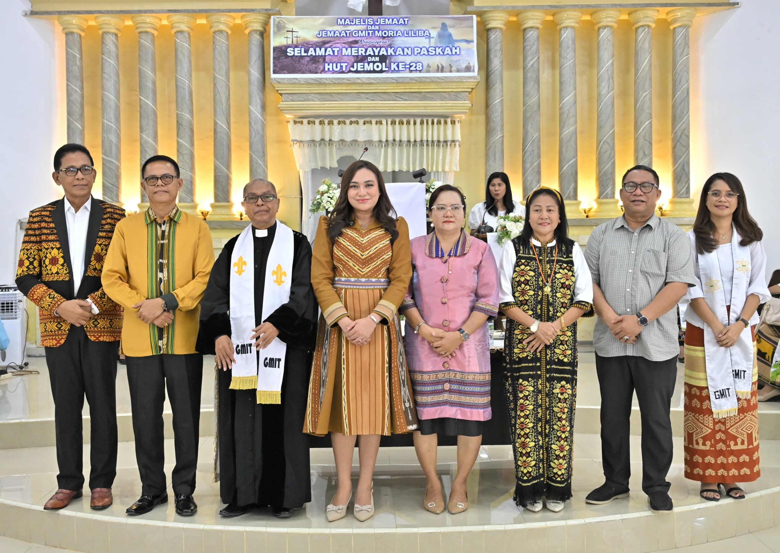 Wakil Wali Kota Kupang, Serena C. Francis, S.Sos., M.Sc., menghadiri Ibadah Paskah dan perayaan Hari Ulang Tahun ke-28 GMIT Moria Liliba yang berlangsung di GMIT Moria Liliba, Minggu (5/4).