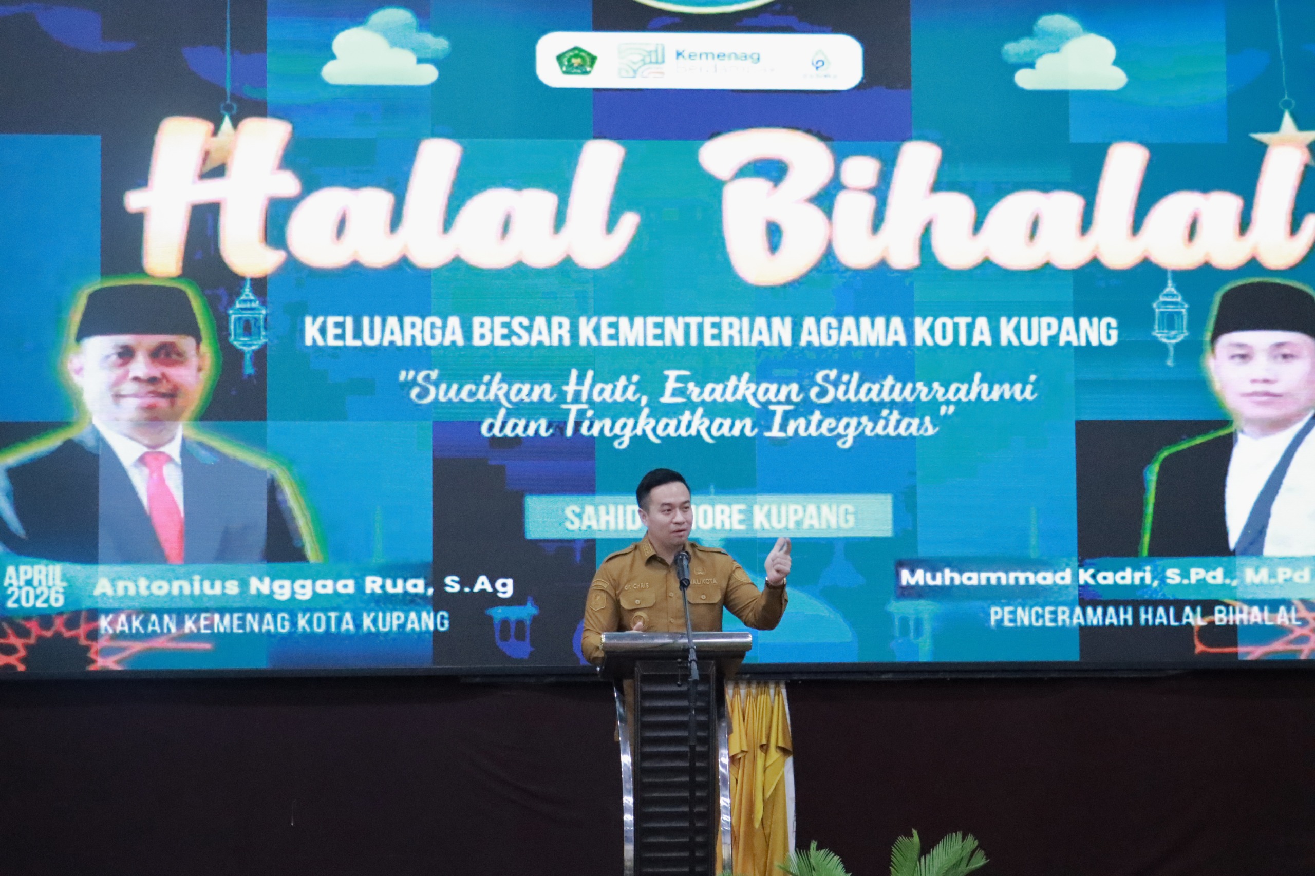 Wali Kota Kupang, dr. Christian Widodo, menghadiri acara Halal Bi Halal 1447 H/2026 M Keluarga Besar Kementerian Agama Kota Kupang yang berlangsung di Hotel Sahid T-More, Selasa (14/4).