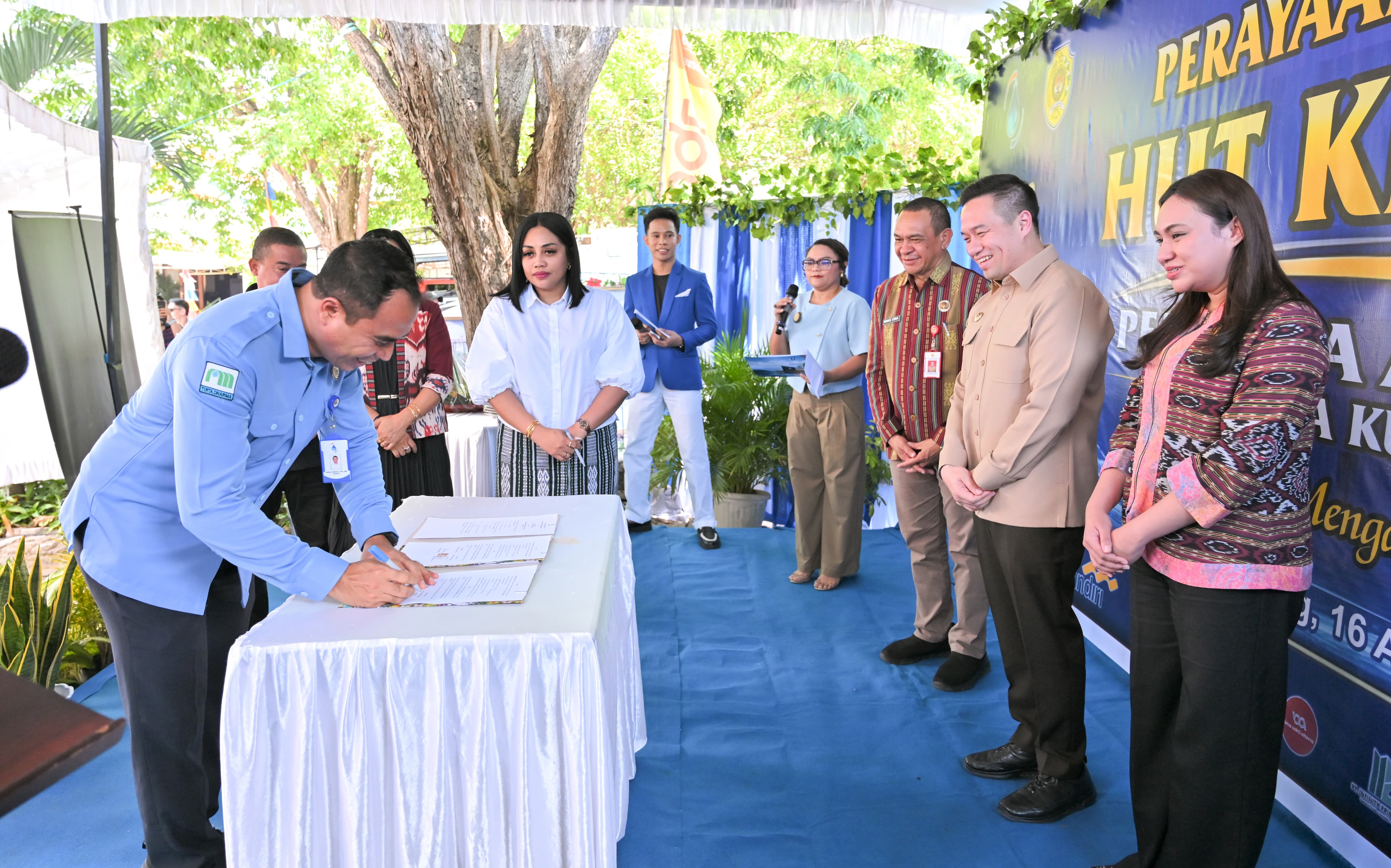 Wali Kota Kupang, dr. Christian Widodo, menghadiri Acara Puncak Hari Ulang Tahun (HUT) ke-XVII Perumda Air Minum Kota Kupang yang berlangsung di Halaman Kantor Perumda Air Minum Kota Kupang, Kamis (16/4).