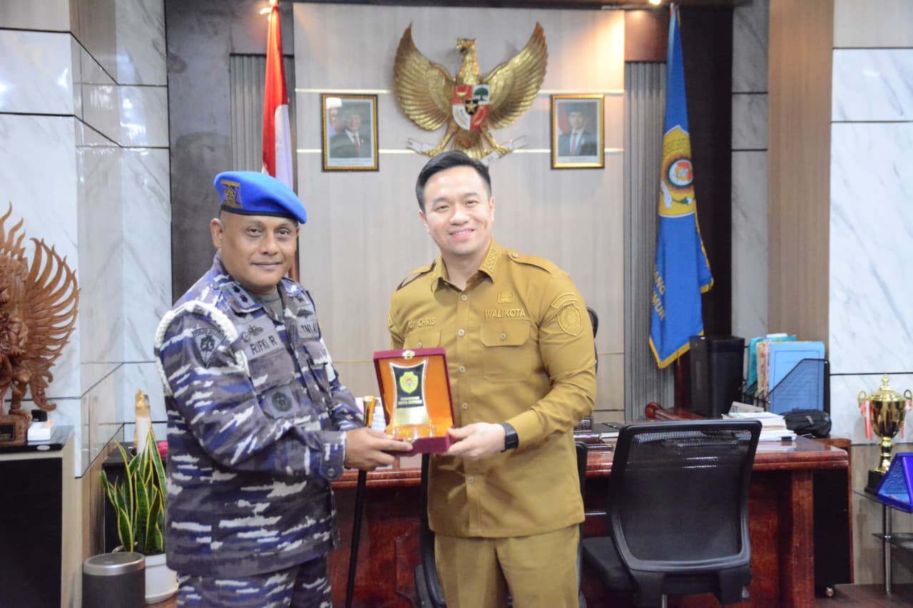 Wali Kota Kupang, dr. Christian Widodo menerima kunjungan silaturahmi Komandan Polisi Militer Angkatan Laut (Danpomal) Kupang, Letkol PM Rifky Rizal, di ruang kerja Wali Kota, Selasa (23/9). Pertemuan membahas seputar penguatan kerja sama antara Pemerintah Kota Kupang dan Pomal dalam mendukung keamanan dan ketertiban masyarakat. Turut hadir Letda Endy dari Pomal Kupang.