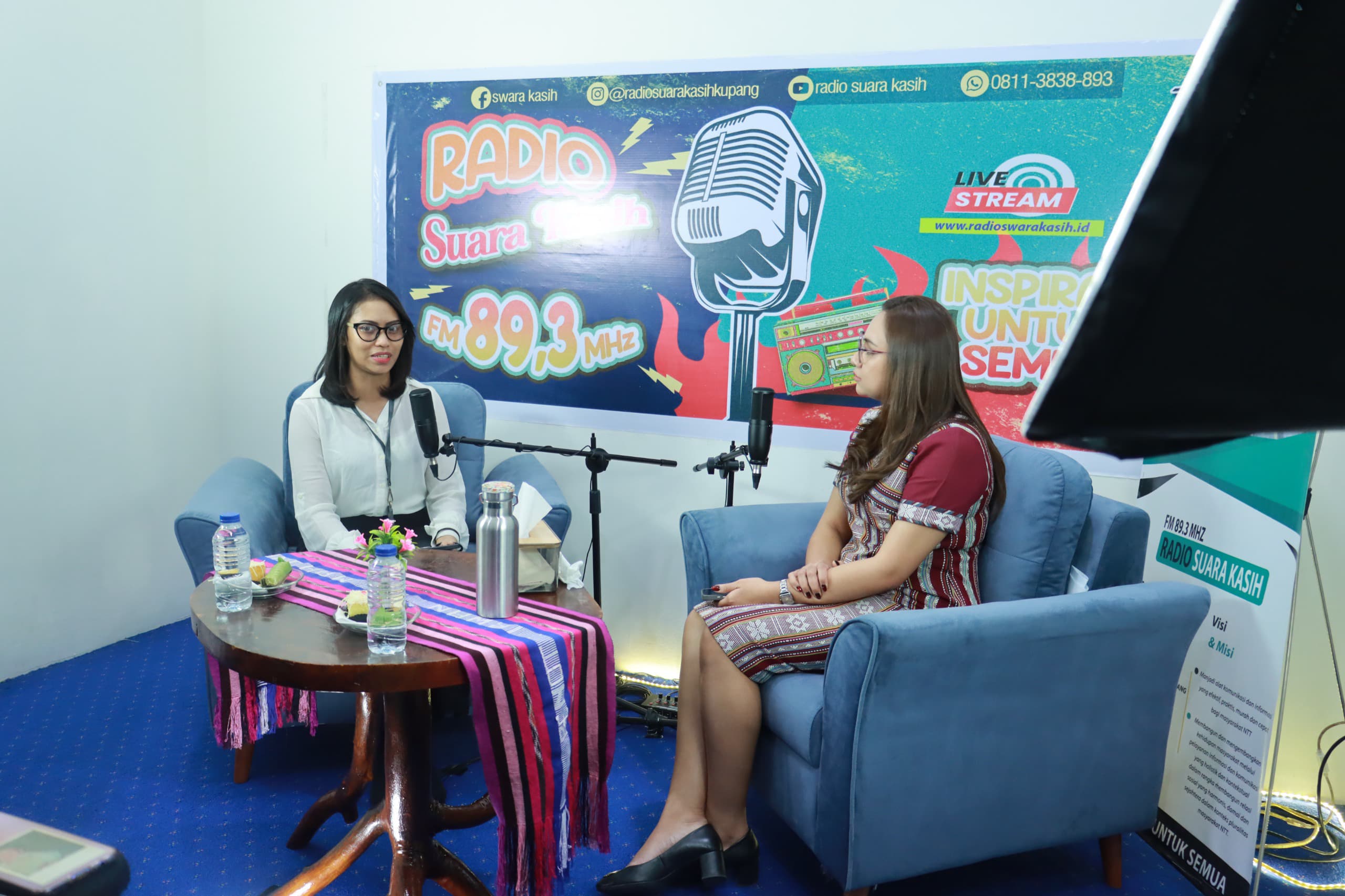 Wakil Wali Kota Kupang, Serena Cosgrova Francis, S.Sos., M.Sc., hadir sebagai narasumber dalam sebuah program siniar (podcast) yang diselenggarakan oleh Radio Swara Kasih Kupang, Kamis, (16/10) di studio radio tersebut. Wakil Wali Kota didampingi oleh Kepala Dinas Pemberdayaan Perempuan dan Perlindungan Anak Kota Kupang, dr. Marsiana Y. Halek.